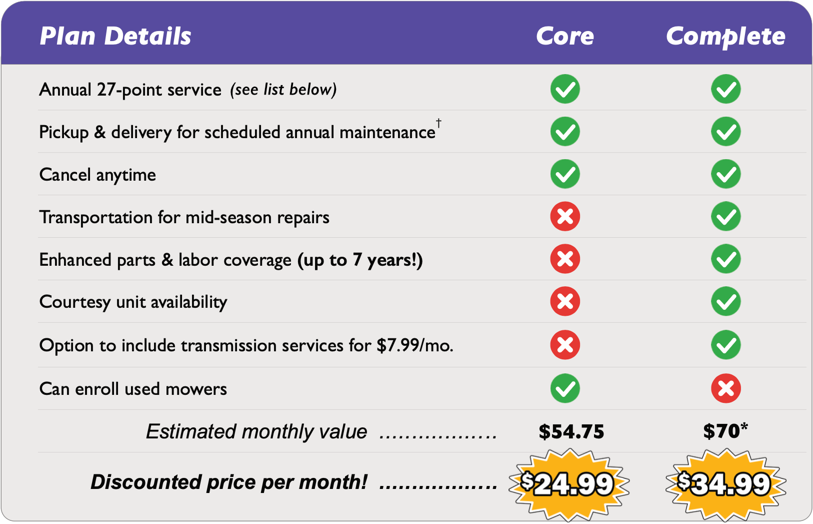 If your mower has a mid-season breakdown, even transportation is included at no charge, when within the program limits.